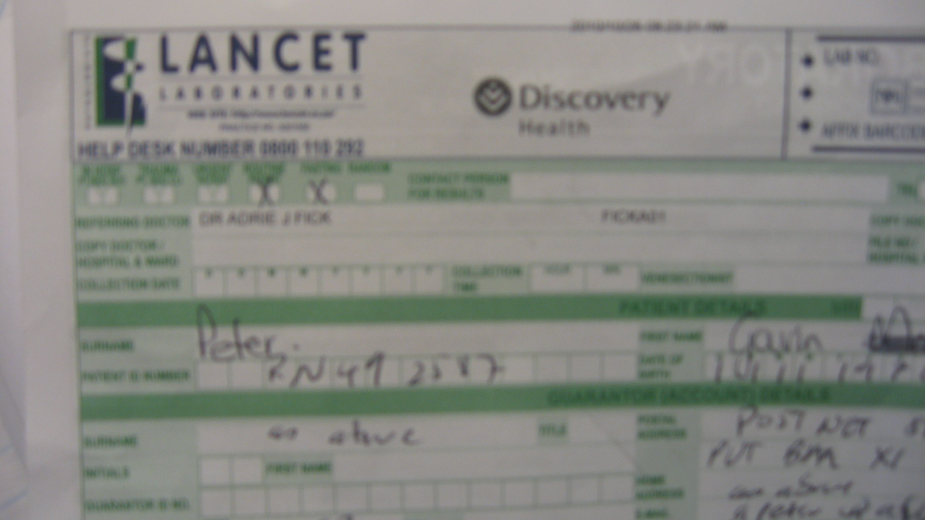 11 pm is always deserted in Joburg. I made it to the clinic, handed in my form and sat down. No reaction from the night nurse. “I’ll call the other nurse.”